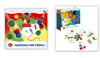 I podobnie jak powyżej, gra stymuluje milion rzeczy 🙂 a dzieci ją uwielbiają czyli „Nawlekaj nie czekaj” oraz „Wzory, kolory, memory” (wzory, memory… raczej dla dzieci 3 letnich, a nawlekaj… myślę, że najwcześniej od 2,5).