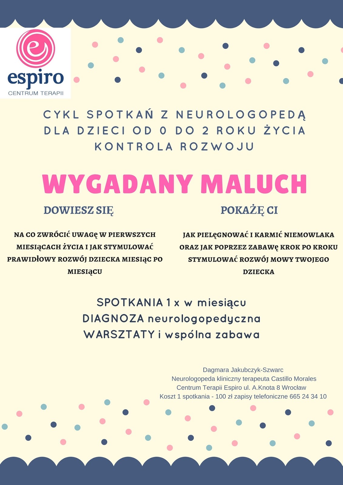 Wygadany Maluch to kontrola rozwoju dziecka od urodzenia do drugiego roku życia, to comiesięczne spotkania z rodzicami i ich maluchem, na których krok po kroku, miesiąc po miesiącu badam dziecko, wyjaśniam co na danym etapie życia powinno robić i w jaki sposób poprzez zabawę i pielęgnację rodzic może rozwijać umiejętności dziecka, aby uniknąć problemów w przyszłości.