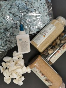 Kiedy wszystkie muszle i kamienie zostały wyłowione, czas przykleić je na wcześniej przygotowanej planszy.